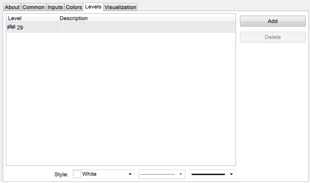 So, if we add 56 (it’s okay to round) and 2, we get 58.  Divide that by two and we’ll use 29.  Now, we’ll add that level as our “zero line”.  We’ll make those adjustments in the settings screen on the levels tab.