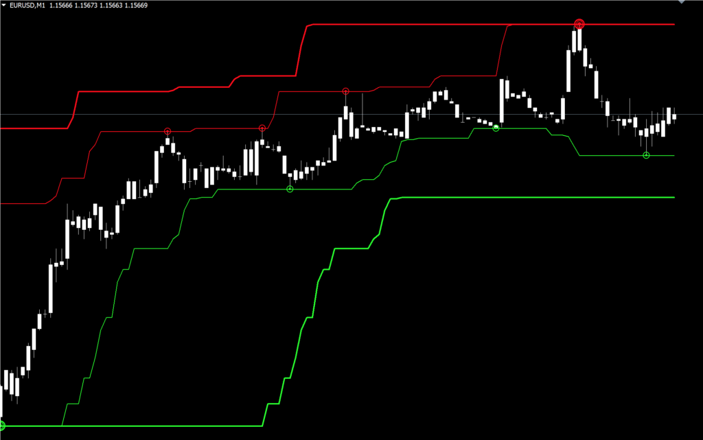 Below is a screenshot of the Renko Super Signal.  Notice it’s on the 1-Minute time frame.  If you’re patient, you’ll easily see that the signal moves each time a new swing high/low is made.