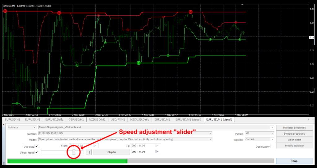 Also included is a screenshot of the strategy tester.  Having the ability to slide the “speed” of the chart provides an easy way to spot the offending indicator.