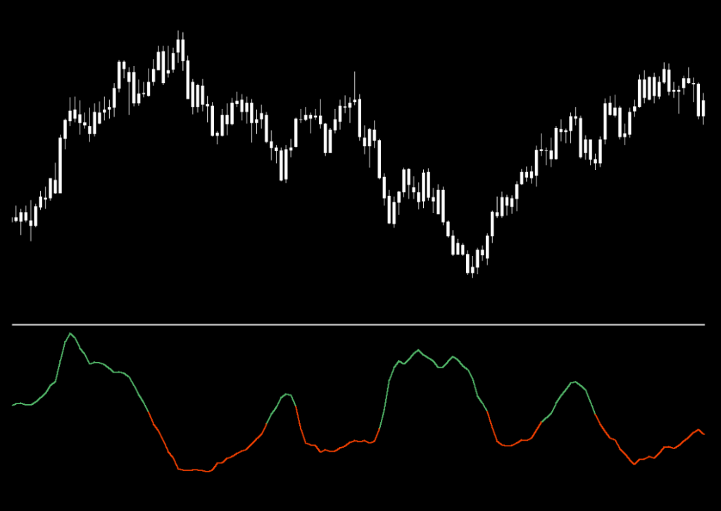 Below is a screenshot of what the indicator looks like on the daily time frame. Note that we’ve changed the color of the candles to white to remove any emotional bias so that only the indicator is prominent.
