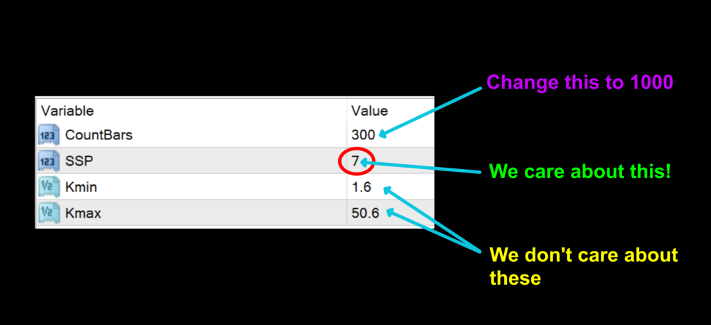 SSP: This changes the variables used in the calculation of the indicator. The default setting is 7.