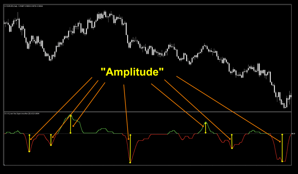 Before we get into the settings and how to use it, we want to point out a characteristic of the indicator which you need to ignore. The amplitude (or distance) away from the zero line. In the image below, we’ve identified extreme levels of amplitude, so you know what we’re referring to.