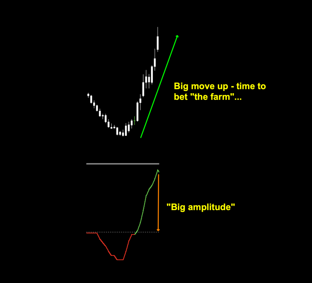 You’ll see this indicator’s inherent math and visual display, a lot of the volatile price movements are “smoothed” out. We’re also going to address the “amplitude” of the indicator; what it is and why you should ignore it. More on that later in the screenshots.