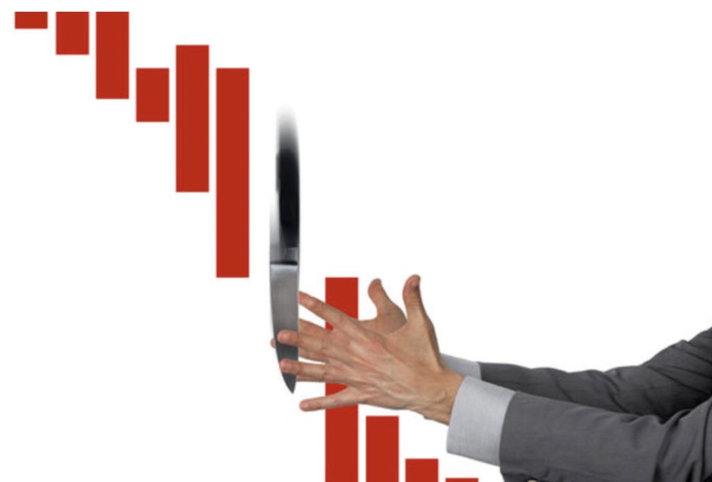 Picking tops and bottoms are a terrible (and dangerous) way to trade. This has also been called “reversal trading” to make it sound like a plausible strategy. Some have equated it to trying to catch a falling knife, meaning that if price plunges, then it must reverse at a certain point.