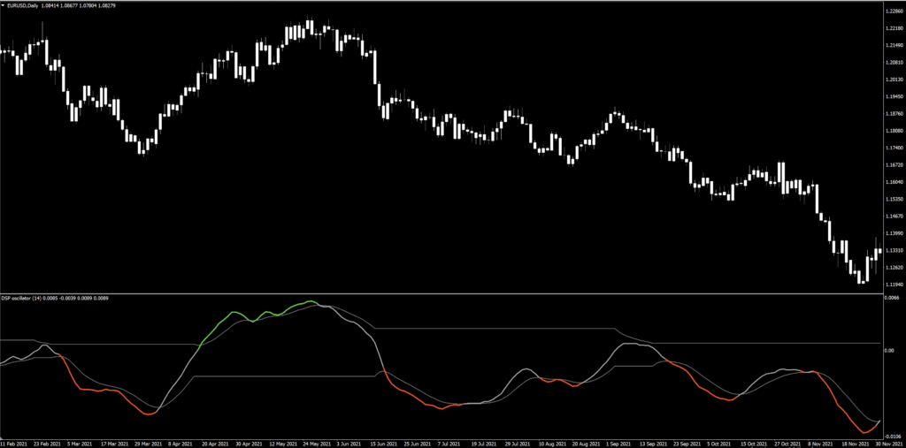 DSP price: This is the data set the indicator uses to generate the red/green/gray signal line. The default value is Median.