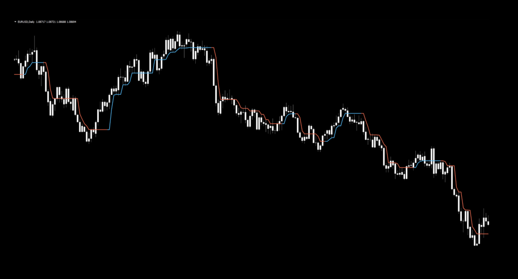 The Half Trend indicator uses a combination of moving averages and a filter to determine the trend strength. As you’ll see in the default image below, the signal line is a series of segments connected together that have different slopes. The steeper the slope, the stronger the trend. Flat portions indicate a lack of significant trend.