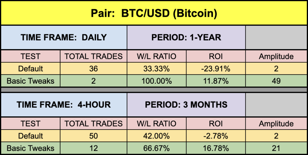 Notice that the results from our testing are all over the place. This is a great example that different markets and varying market conditions can greatly affect how an indicator will react with price. It comes down to the math. This is why we strongly advocate finding indicators that use different math, especially with C1 and C2. You want indicators with varied mathematical processes to provide reliable signals, so the odds of a successful trade will be in your favor.
