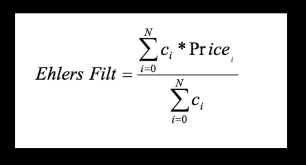 In the first part, Mr. Ehlers refers to a filter called the FIR (Finite Impulse Response). The formula for that is below.