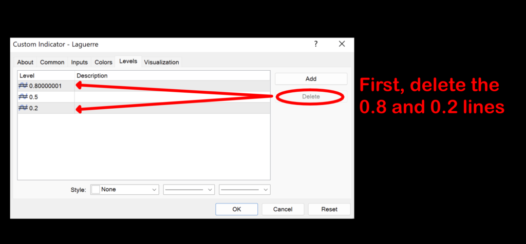 The first thing we’ll do is call up the settings menu and click on the “levels” tab to remove the 0.8 and 0.2 levels.