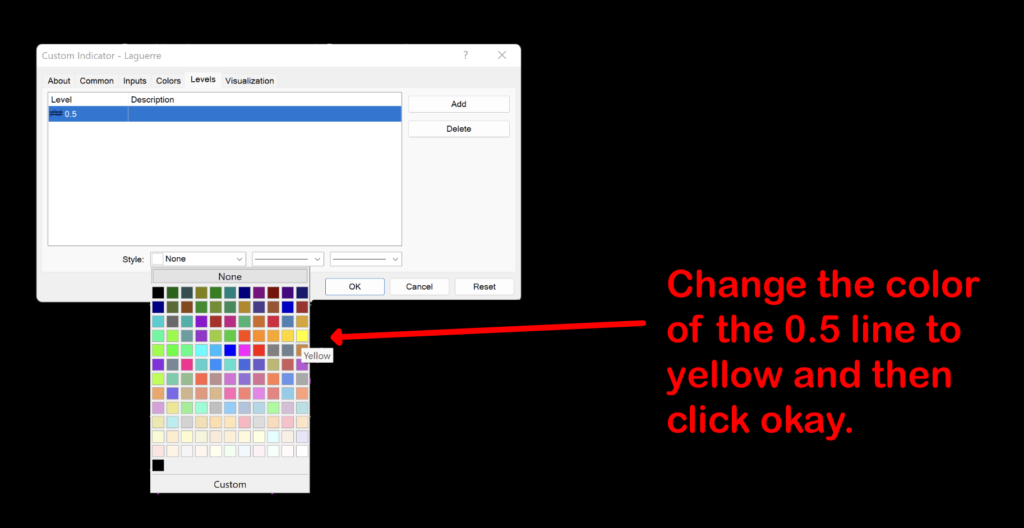 Don’t forget to thicken up the signal line if you want. We chose “4” for our example. It makes it easier to see.