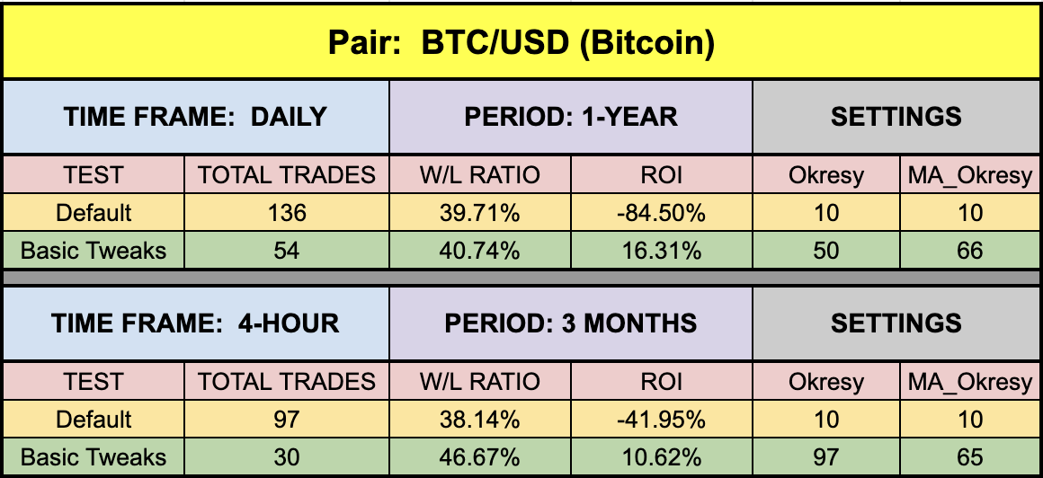 We’re certain you’ve noticed a pattern with testing on Bitcoin throughout the indicator blogs/profile series. The default settings have deviated far off what other pairs return. There are reasons for this.