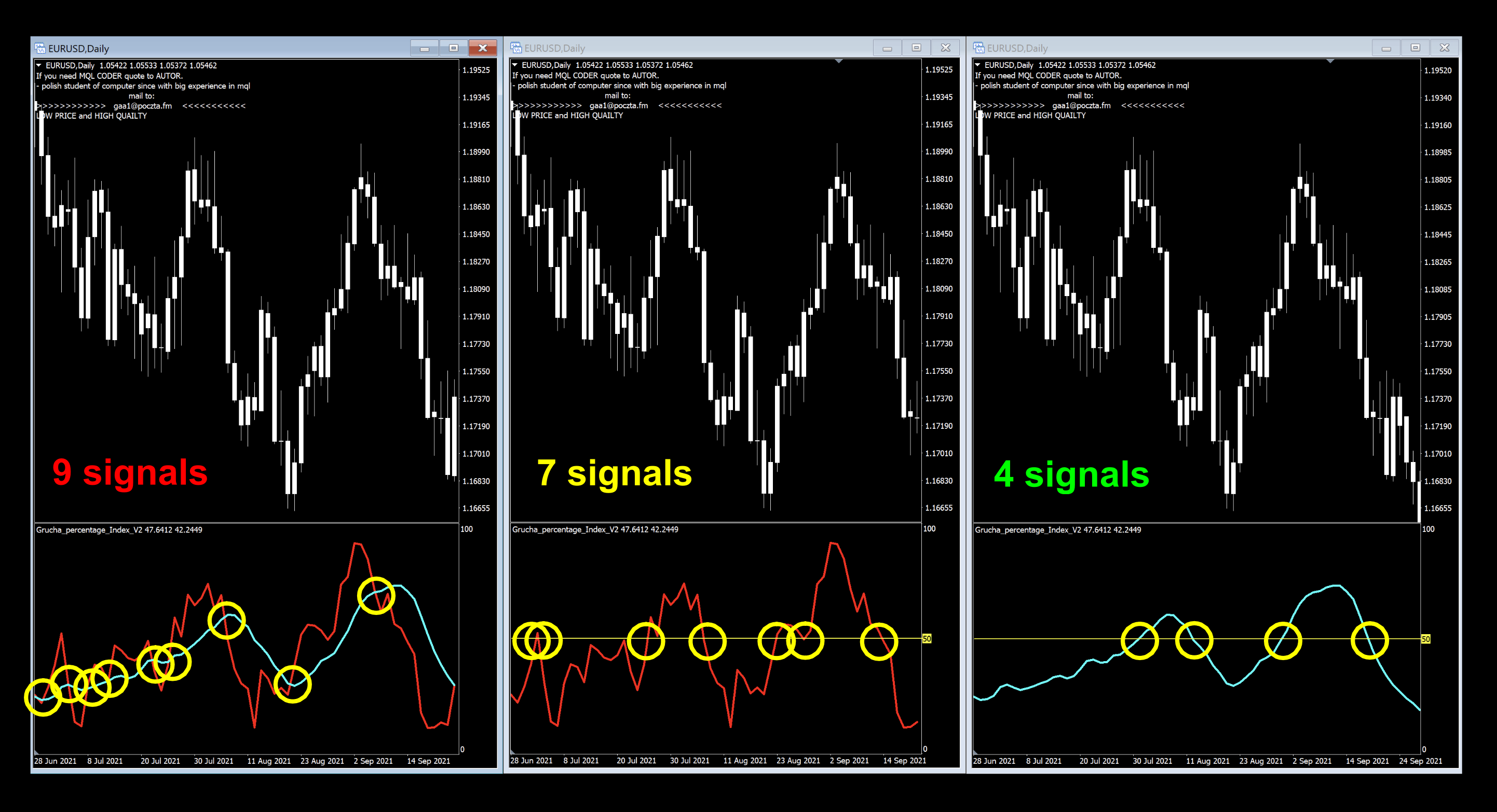 As a two line cross, there were 9 signals. A couple of them were within the same circle, but this had the most. Using the Grucha Index alone, a couple less, and the MA of Grucha, significantly less…and easier to see.