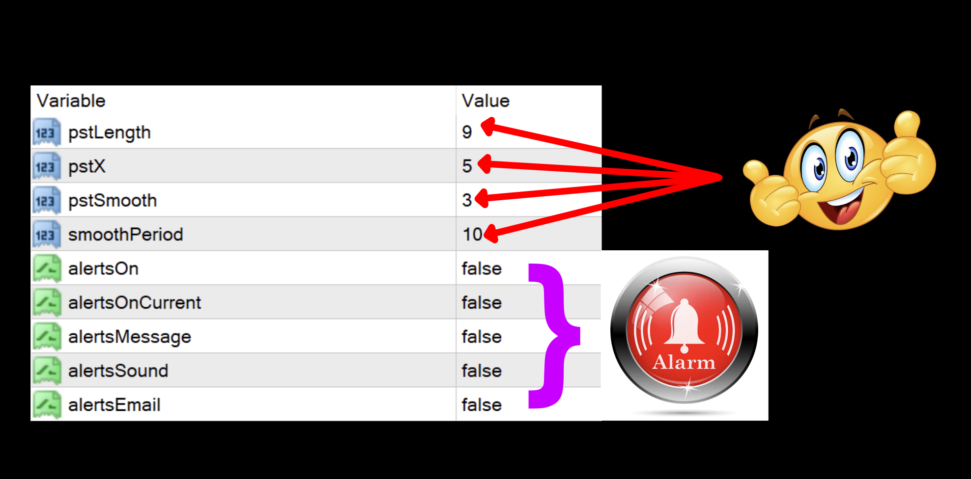 pstSmooth: The smooth coefficient used to EMA smooth the resulting stochastic signal lines.  The default setting is 3.