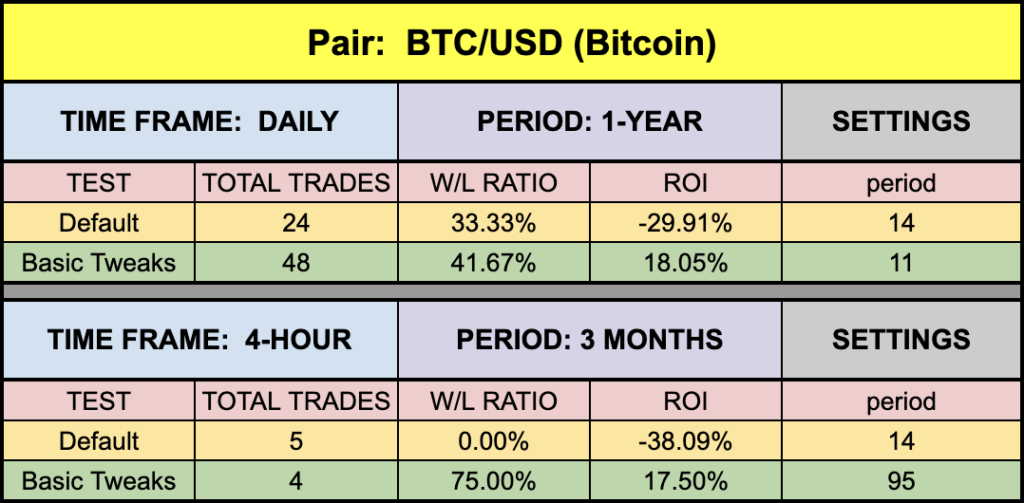 Interesting results, for sure. Some were pretty heady, some mediocre, and some, “meh”. But, that’s okay. It’s what we can expect from indicators across varying markets. Depending on the state of that particular market, indicators will react differently. Gold (and sometimes BTC) have been posting amazing results lately, while others were somewhat less awe-inspiring; but still acceptable. Totally normal, and totally expected. This is why we advocate trading across multiple pairs. Always look for opportunity and do not discount a “so-so” indicator because of questionable results on just one pair. Your research and effort will pay off.