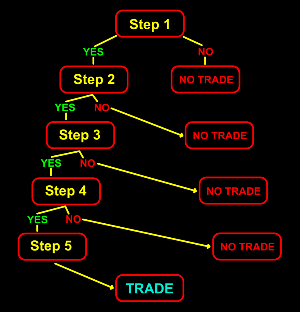 Let me clarify that statement. Algorithmic trading is a series of decisions that follow something called “Boolean Logic”. If something happens (or doesn’t), then something else happens (or doesn’t). Simple binary decisions – yes/no, true/false using three operators; AND, OR, and NOT. It sounds a little odd, but just think of a decision tree.