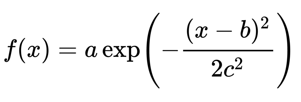 The first thing we need to do is define what a Gaussian function is. Before we dig into the finer points, let’s get the math out of the way for our mathy people.