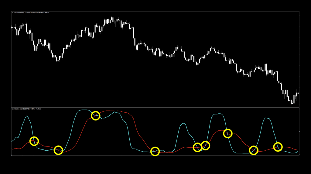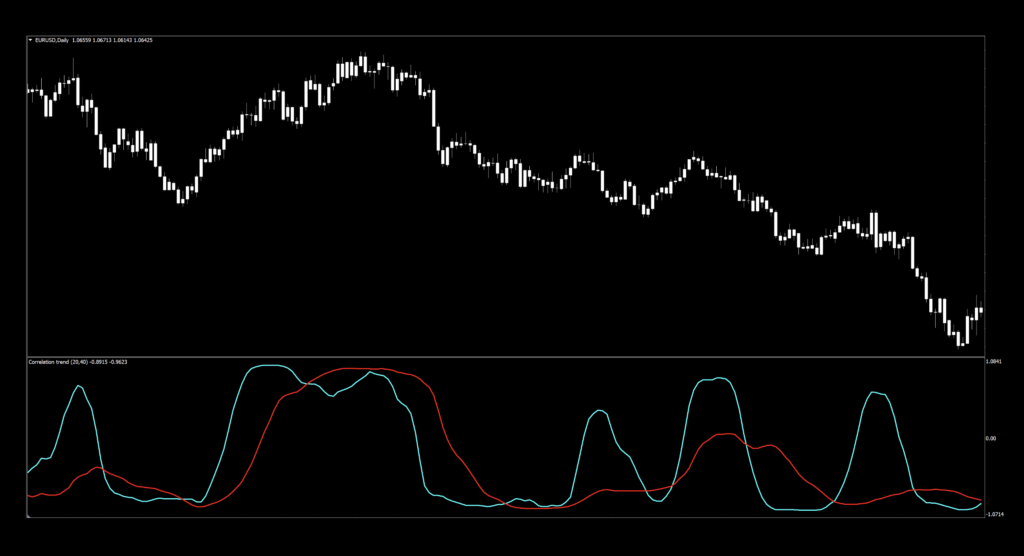 Our mystery connection is none other than one of the greats; John Ehlers.  The Correlation Trend indicator was developed in 2020, a somewhat newer work from Mr. Ehlers.  We’ve included the link to the PDF file HERE which takes you to the article featured in May 2020s Stocks & Commodities Magazine describing all the inner workings of the indicator.  It was originally coded in “easylanguage”, and coded for MT4 the same year.  This two lines cross confirmation indicator is built on the correlation, or relationship between a trend and the cyclic component, of the market.