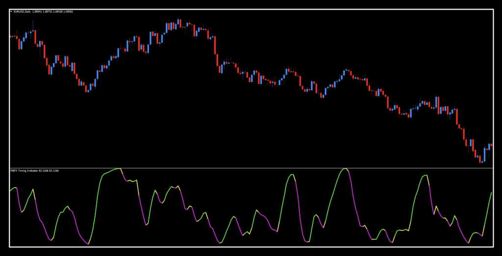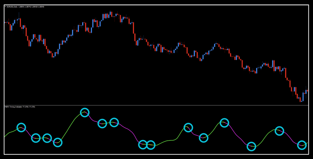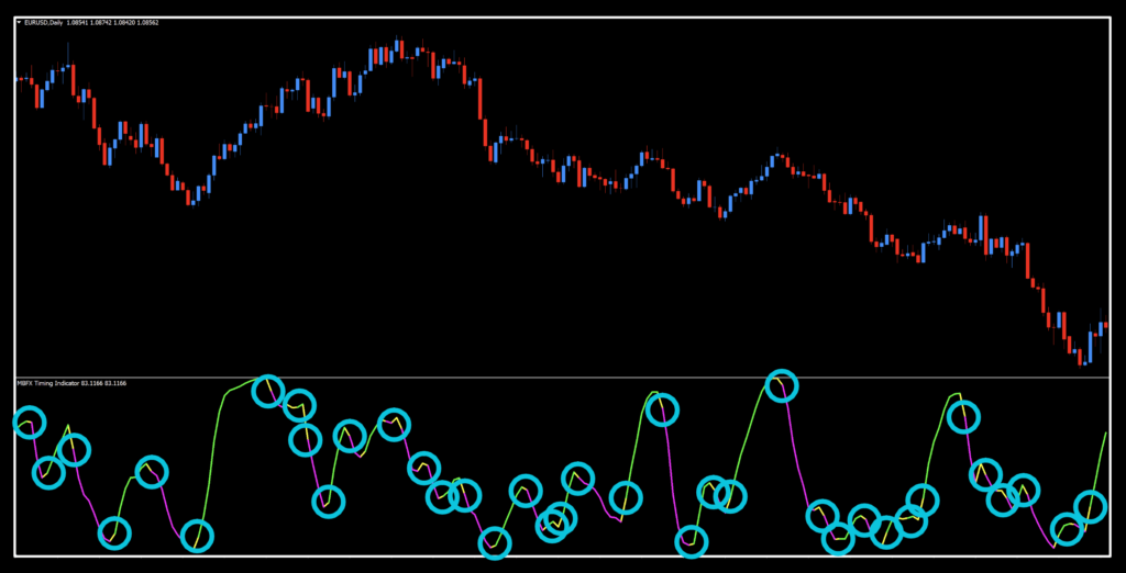 The MBFX Timing indicator, we discovered during our research, is actually a renamed indicator called Jurik RSX (Relative Strength Quality Index) developed by Mark Jurik; a derivative of the RSI (Relative Strength Index).