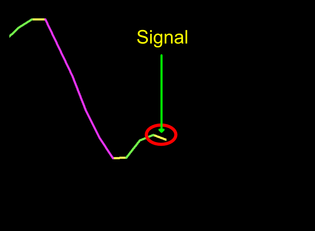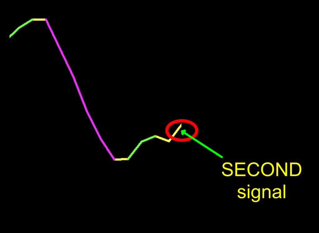 What we noticed is the YELLOW is the initial signal candle, however, you need to verify the actual trade signal in the next period before pulling the trigger. In the following sequence of screenshots, we identify the accurate signal.