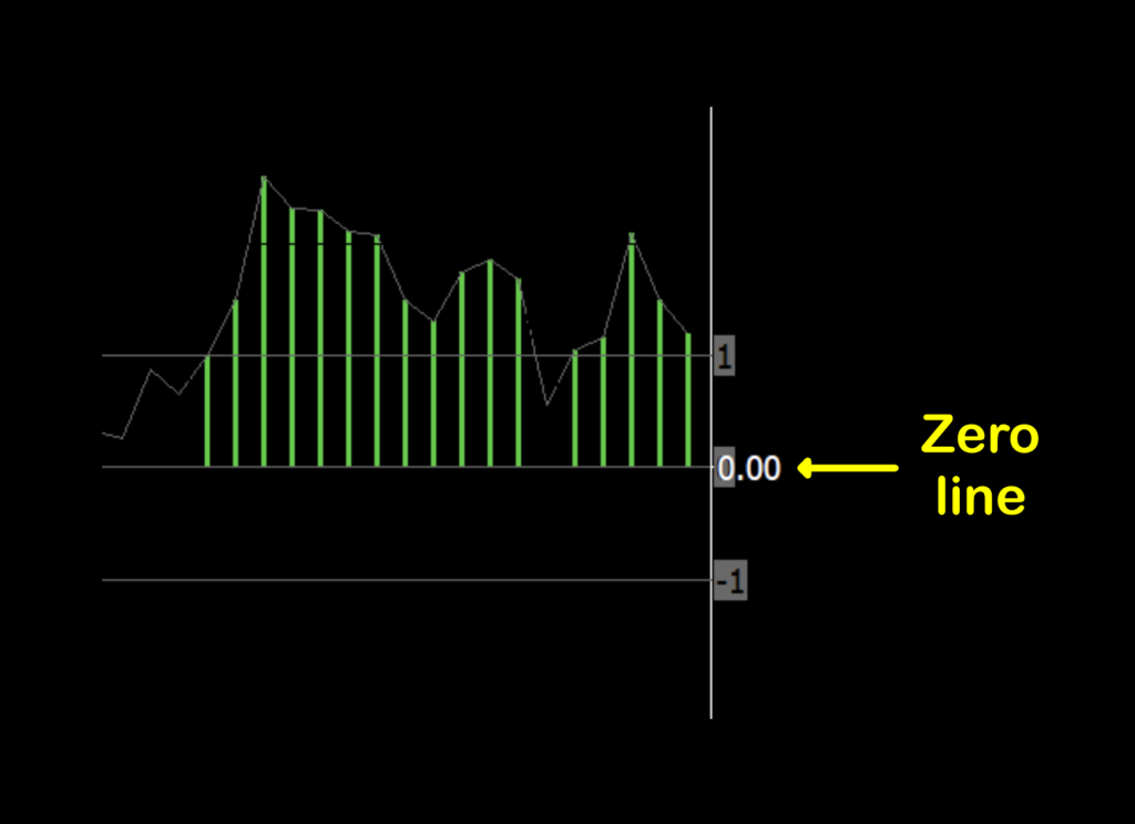 And of course, centered is the zero line. However, this indicator is not a zero line cross because we will be taking into consideration areas where no candle is printed.