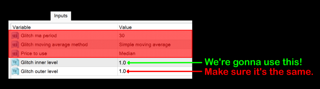 Glitch inner level: The “filter” used to determine when an existing trend has been identified. The default value is 1.0.