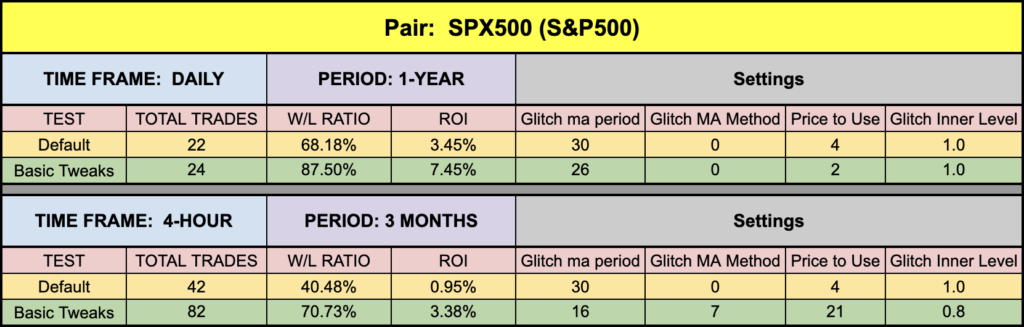 We did okay with this one. The EURUSD posted some nice figures. The SPX500 returned results pretty much on par with what we’ve been seeing. BTC and XAU were the darlings of the bunch with their delightful returns, and these aren’t even the best ones for the time span we tested through. Go have some fun with this one. Once you get it configured, consider saving it as a chart template to speed up your testing.