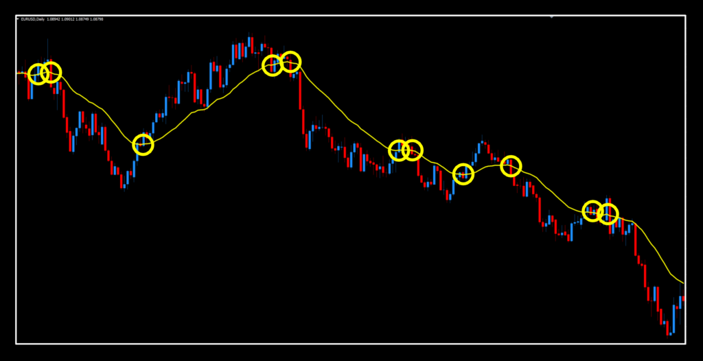 The first thing we noticed were how well this indicator performed. Even in areas where volatility was low and price went sideways, the indicator pushed through where fewer false signals appeared. The non-lagging aspect of this indicator was apparent as well, calling signals earlier than others…and we slowed this down considerably.