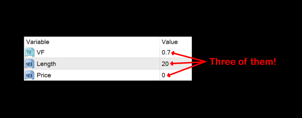 There are three variables, of which we’ll be using all of them when testing.