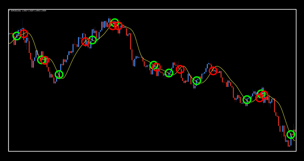 As a baseline, its function is very straight forward. When price crosses and closes above, it’s a long signal. Conversely, when price crosses and closes below, it’s time to consider a short position.